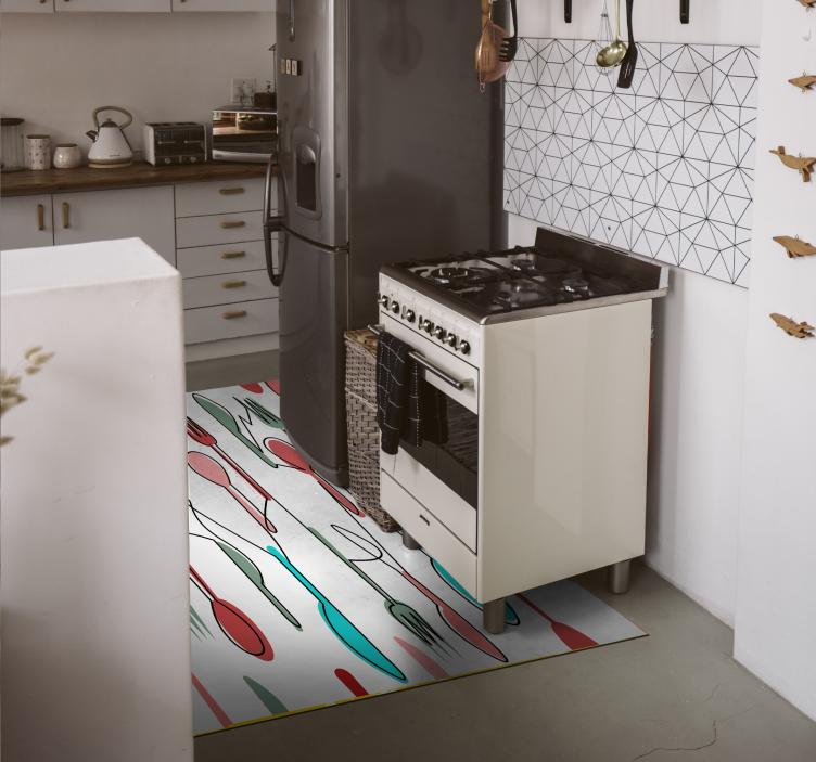 Esta alfombra de cocina cubiertos de colores se puede fabricar en medidas personalizables, en el ancho y el alto que desees, para ajustarse al espacio donde se desee utilizar. Además, ofrecemos adhesivos de doble cara por si deseas fijar la alfombra vinilo cocina al piso.