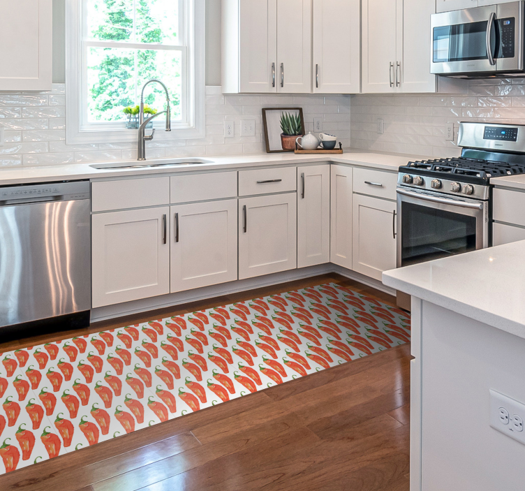 Referencia: R11125¿De qué material es esta alfombra vinílica con patrón de chiles?
