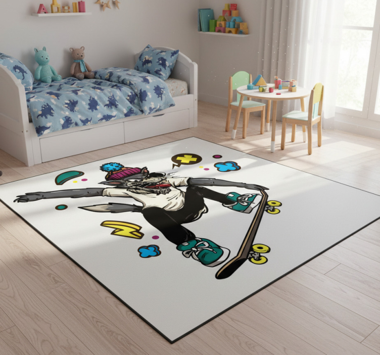 Referencia: R20020La alfombra vinílica animales lobo sobre patineta es una obra de arte visual que captura la esencia de la aventura y la diversión. Con un diseño vibrante que presenta un lobo audaz montando su patineta, esta alfombra no solo es un elemento decorativo, sino también una invitación a explorar la creatividad y la energía de los más pequeños. Su colorido y detalles encantadores transformarán cualquier espacio en un lugar lleno de vida y alegría.