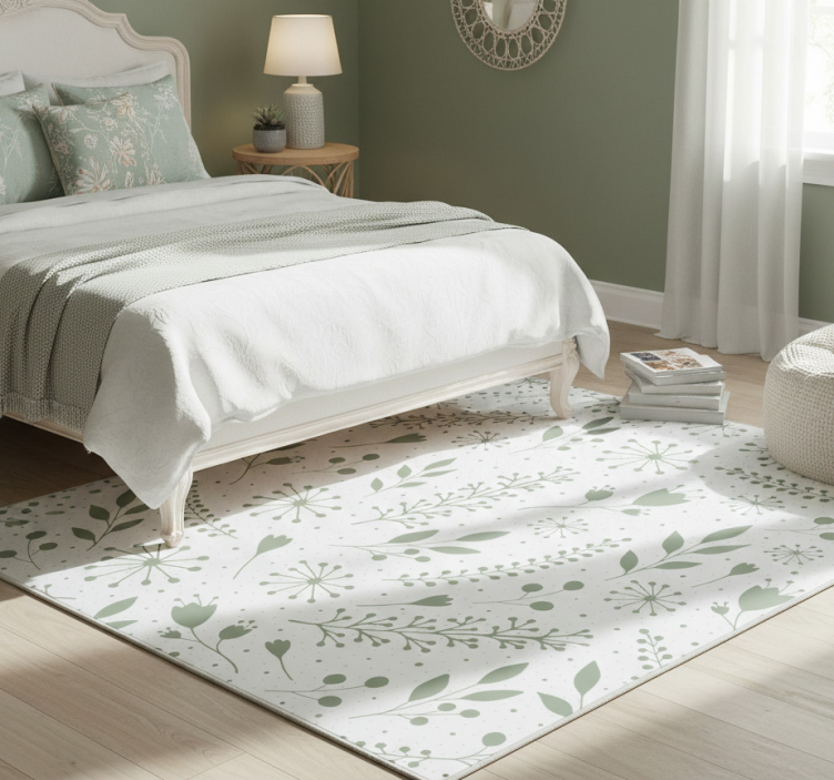 Alfombra vinílica flores diseño de hojas verdes con flores
