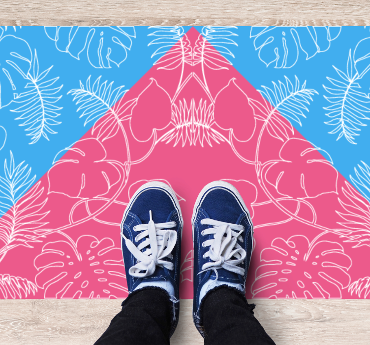 Descubre la elegancia de la alfombra vinílica naturaleza hoja tropical, un diseño cautivador que combina triángulos y hojas en tonos de rosa y azul. La fusión de formas geométricas y la frescura de la naturaleza crean un ambiente vibrante y acogedor para cualquier espacio de tu hogar. ¡Haz de tu decoración un verdadero reflejo de la belleza tropical!