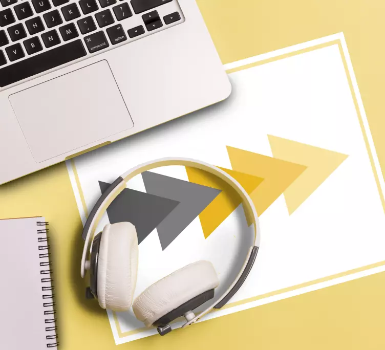 ¡Descubre el Mouse pad texturas motivo flechas dinámicas! Su diseño combina triángulos en un estilo nórdico que presenta formas geométricas en una elegante disposición de flechas. Con un toque minimalista y moderno, esta ilustración en tonos amarillo, gris y negro transformará tu espacio de trabajo en un lugar inspirador y lleno de energía.