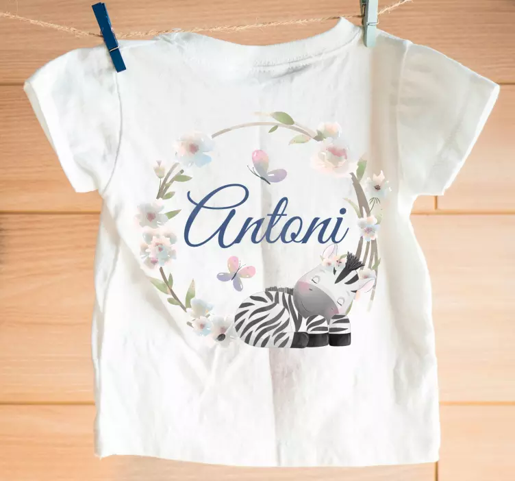 Referencia: T5440Este encantador diseño presenta una cebra juguetona rodeada de delicadas flores y mariposas, perfecto para un artículo de bebé. El nombre personalizado añade un toque único, convirtiéndolo en una opción ideal para un regalo o una ocasión especial.