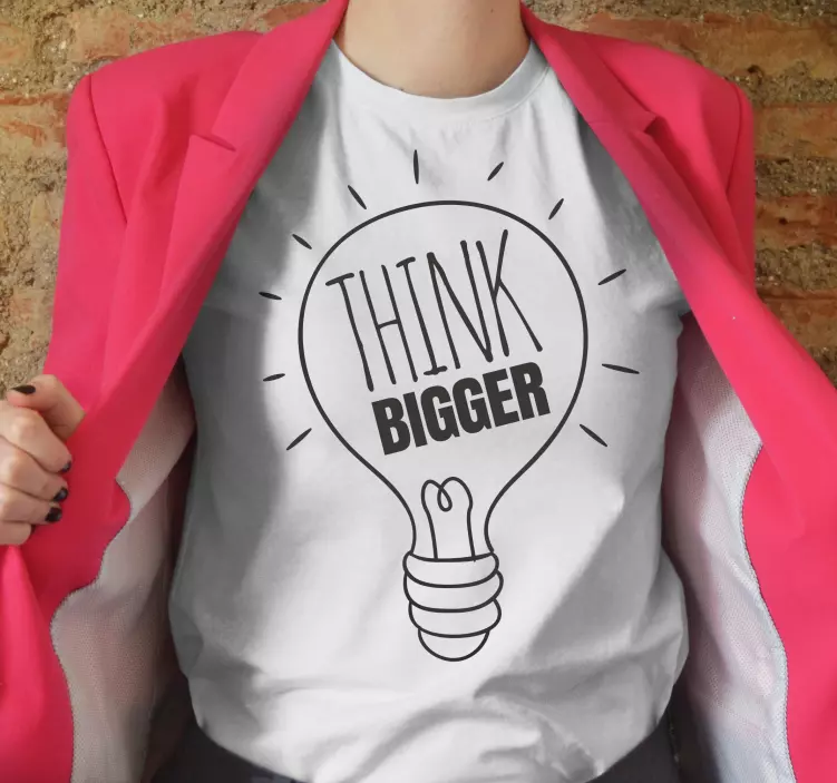 Referencia: T4862Este diseño presenta una bombilla con la frase 'Think Bigger' en letras negritas. La imagen evoca un sentido de inspiración y pensamiento positivo, utilizando visuales simples pero poderosos que resuenan con un tema motivacional.