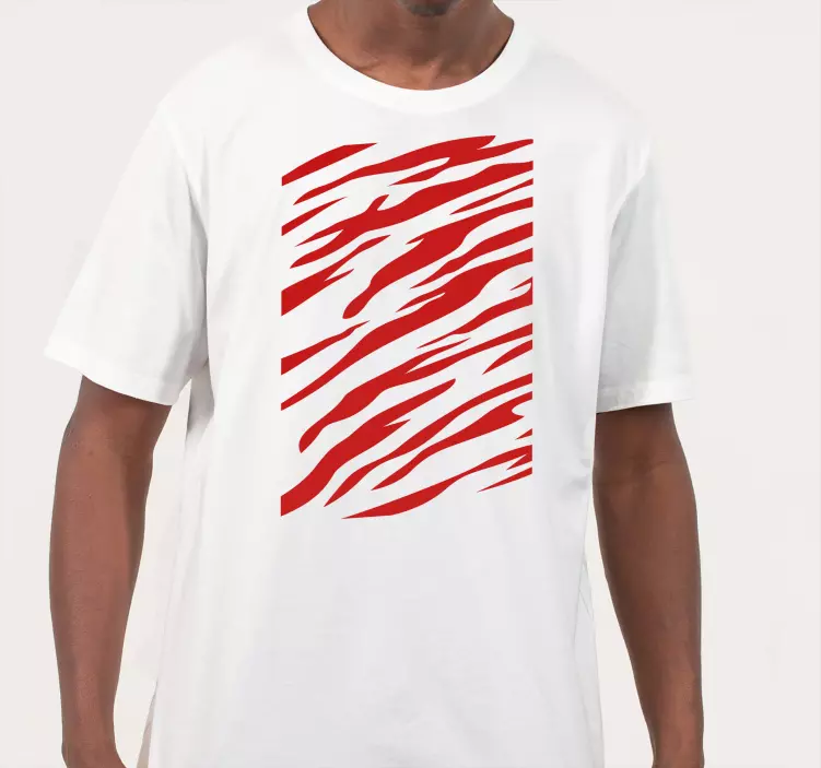 Consigue este diseño único y moderno de camiseta con un patrón abstracto de rayas rojas estilo tigre diagonal. Fabricado con los mejores materiales disponibles y tu satisfacción en mente, esta camiseta de algodón fresco y cómodo es perfecta tanto para niños como para adultos. Los niños la adoran porque no se pega y los adultos la aman porque es fácil de lavar. ¡Hazte con esta camiseta roja personalizada y destaca en el campo de fútbol!