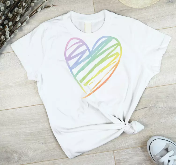 La camiseta diseño de corazón multicolor es una auténtica obra de arte que combina un hermoso diseño de arcoíris en forma de corazón, con un toque de garabateo que le da un aire despreocupado. Su degradado colorido y vistoso la convierten en una prenda elegante y casual, perfecta para quienes buscan un estilo único y lleno de vida. ¡Luce increíble y siente la energía positiva que irradia!