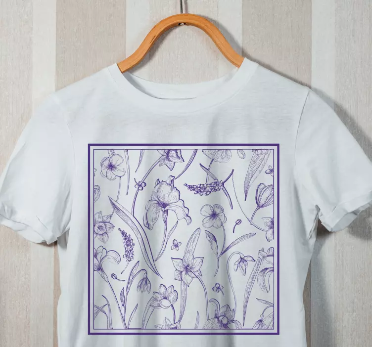 Descubre nuestra camiseta diseño de motivos botánicos, una pieza única que captura la esencia de la naturaleza. Este diseño vibrante presenta un hermoso patrón con azafrán, flores en tonos púrpura, lila y morado, creando un estampado floral que evoca la belleza de un bosquejo botánico. Cada detalle es una obra de arte que celebra la ilustración y la naturaleza, perfecta para quienes aman lucir un estilo fresco y alegre.