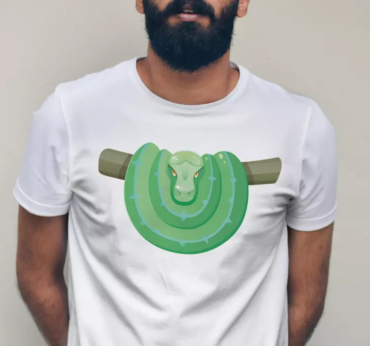 La camiseta diseño verde serpenteante es una pieza única que combina elegancia y diversión. Con ilustraciones de una boa serpiente en un estilo de dibujos animados, este diseño en un vibrante tono verde se enreda con ramas, creando un efecto visual que es a la vez casual y espectacular. ¡Es perfecta para quienes buscan destacar con un toque de originalidad!