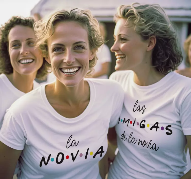 La camiseta del equipo de chicas es una prenda única que te hará sentir especial en tu despedida de soltera. Con un diseño gráfico divertido y original que incluye la palabra 'Novia' y 'Amigos', esta camiseta es perfecta para que todo el mundo sepa quién es la novia en su gran día. Además, está confeccionada con 100% algodón y cuenta con un cuello redondo y mangas cortas, por lo que es cómoda de llevar. Disponible en tallas para adultos desde la S hasta la XXL. ¡Haz que tu despedida de soltera sea inolvidable con esta camiseta única!