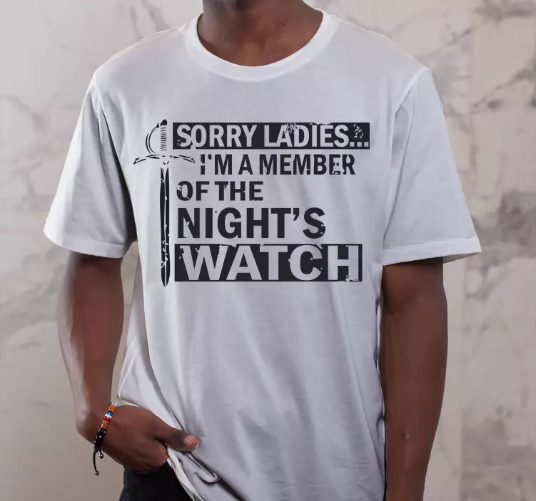 Referencia: T4932Esta camisa blanca presenta una declaración audaz que enfatiza la membresía en la "night's watch", acompañada de un llamativo gráfico de espada. Perfecta para quienes buscan mostrar su afición con humor mientras disfrutan de una cómoda ropa casual.
