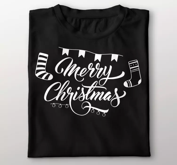Referencia: T4656Este llamativo diseño presenta la frase 'Merry Christmas' en una elegante tipografía, acompañada de patrones festivos como medias y elementos decorativos, encarnando el espíritu de celebración durante la temporada navideña.