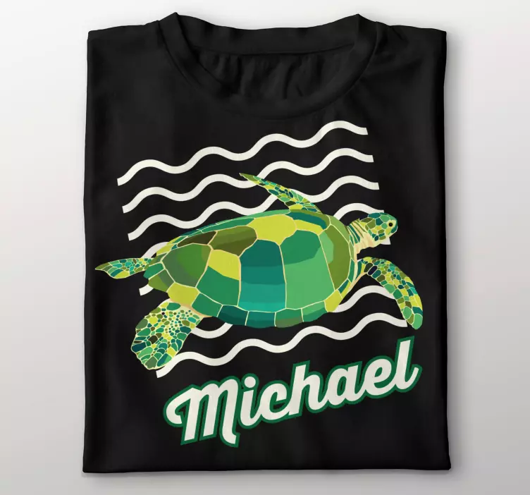 Referencia: T4978Este diseño presenta una vibrante tortuga marina verde nadando con gracia. Los patrones y colores intrincados evocan la belleza del océano. Las líneas fluidas en el fondo añaden movimiento, mientras que el nombre aporta un toque personal, convirtiéndolo en una pieza única.