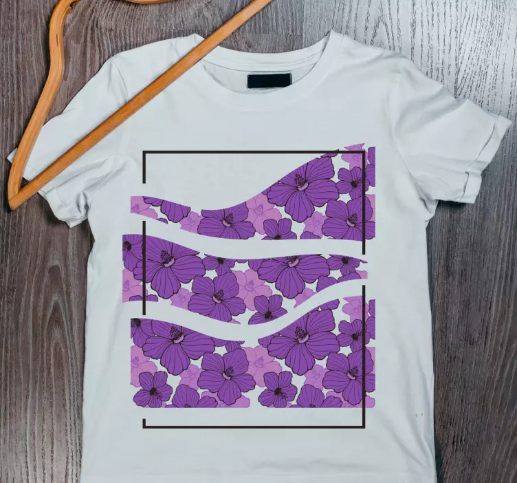 La camiseta madre e hija elegancia de motivo floral presenta un hermoso diseño que combina colores vibrantes como el azafrán, púrpura, lila y morado. Con un estilo moderno y abstracto, las flores moradas se entrelazan en una ilustración única que celebra la conexión especial entre madre e hija. Este diseño floral es perfecto para la moda de primavera, aportando un toque fresco y alegre a cualquier outfit.
