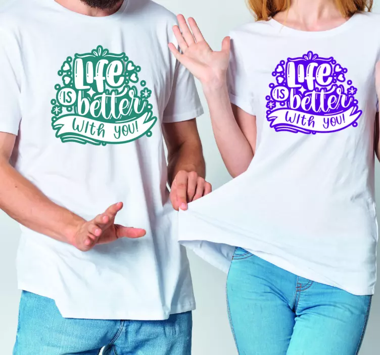 Referencia: T4107Este diseño resalta un mensaje alegre que enfatiza la alegría de la compañía. Mostrado en prendas a juego, el texto vibrante y los adornos crean una atmósfera cálida, perfecta para expresar amor y unidad. Ideal para celebraciones o salidas informales, resuena con temas de conexión y felicidad.