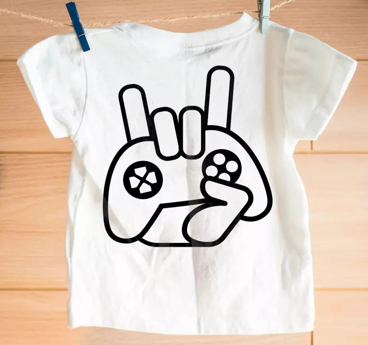 Referencia: T4928Este diseño divertido presenta un controlador de videojuegos con una mano haciendo un gesto de rock. Perfecto para niños que aman los videojuegos, combina elementos divertidos con un aspecto estiloso. Ideal para uso casual, este diseño expresa entusiasmo y un espíritu juguetón de una manera única.