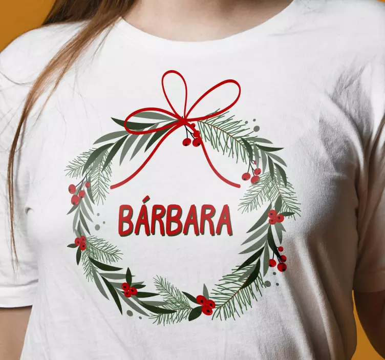 Referencia: T5088Este diseño festivo presenta un nombre personalizado dentro de una hermosa corona adornada con vibrantes bayas rojas y un exuberante follaje. Un encantador lazo añade un toque encantador, haciéndolo perfecto para celebraciones y regalos navideños.