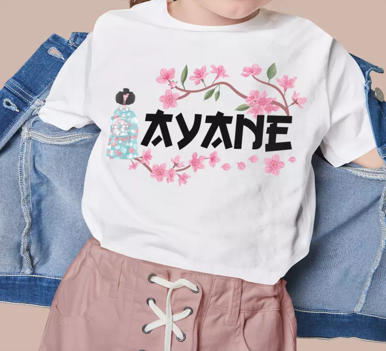 Referencia: T4348Esta vibrante pieza presenta una encantadora muñeca kokeshi rodeada de delicadas flores de cerezo. La tipografía audaz realza el atractivo cultural, mientras que los colores suaves evocan una atmósfera primaveral, perfecta para todas las ocasiones, especialmente para celebrar la individualidad y la herencia.