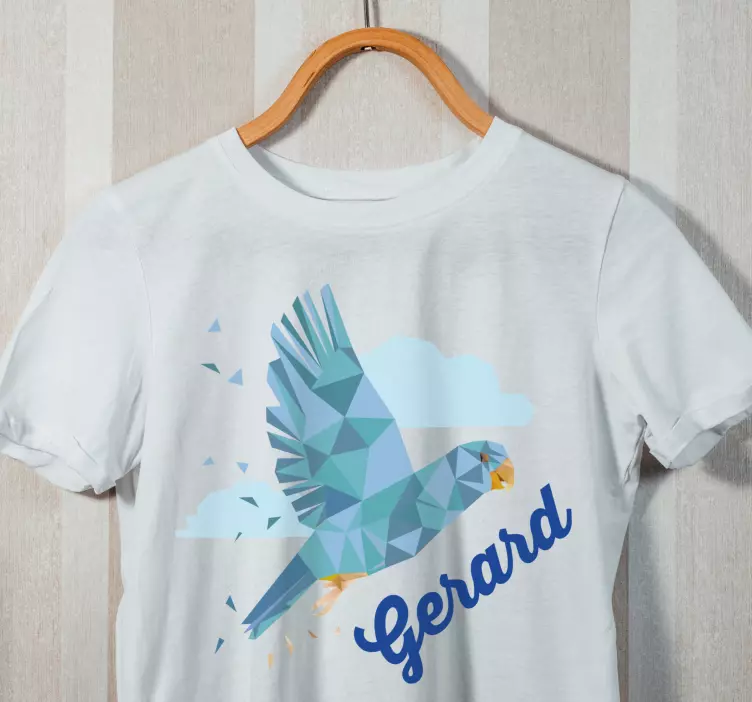 Referencia: T4986Este diseño presenta una representación geométrica de un loro en vuelo, complementada por suaves nubes. Los vibrantes tonos azules crean una apariencia dinámica, mientras que el nombre 'Gerard' añade un toque personal. Perfecto para quienes aprecian obras de arte únicas y llamativas.