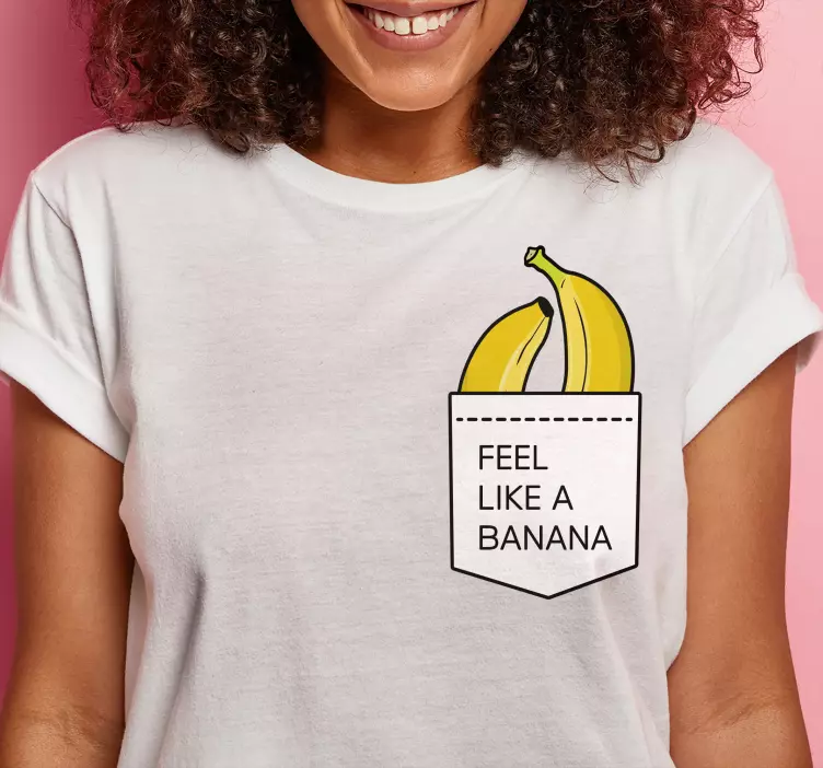 Referencia: T4147Este diseño presenta vibrantes plátanos asomándose de un bolsillo con el texto 'Feel Like A Banana.' La imagen juguetona transmite una vibra alegre y desenfadada, perfecta para ropa casual. Ideal para aquellos que disfrutan de declaraciones de moda divertidas y peculiares.