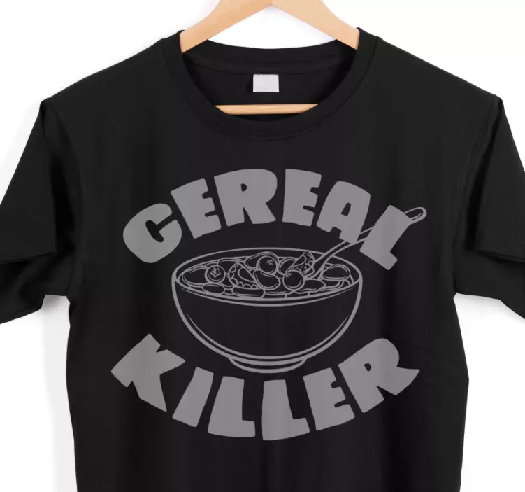 Referencia: T4849Este diseño presenta un concepto humorístico centrado en un tazón de cereal, mostrando una tipografía juguetona y un enfoque divertido hacia la comida. El fondo negro resalta las letras en negrita, creando un atractivo visual que resuena con los entusiastas del cereal.