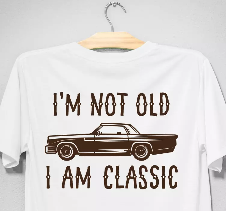 Referencia: T4519Este diseño presenta un coche vintage junto al texto juguetón, enfatizando una declaración humorística sobre el envejecimiento. Captura perfectamente una vibra nostálgica mientras apela a las dinámicas familiares, haciéndolo ideal para momentos de unión entre padre e hijo.