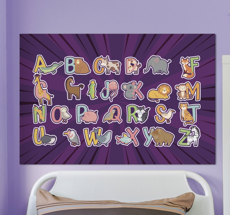 Referencia: Q6433Este diseño presenta una divertida variedad de animales asociados con sus letras correspondientes, fomentando el aprendizaje temprano. Cada personaje está ilustrado de manera vibrante, capturando la atención y fomentando la participación. El patrón dinámico del fondo realza la atmósfera animada, convirtiéndolo en una opción ideal para los espacios infantiles.