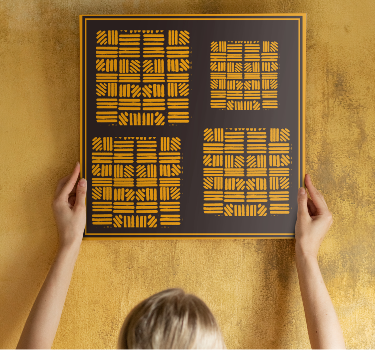 Descubre el Cuadro moderno concepto de arreglo geométrico, una obra que fusiona la esencia africana con un toque elegante en tonos dorados y amarillos. Su diseño abstracto, repleto de líneas y formas geométricas, crea una red visual que atrae la mirada y llena de vida cualquier espacio. Enmarcado cuidadosamente, este arte se convierte en un punto focal que habla de estilo y sofisticación.