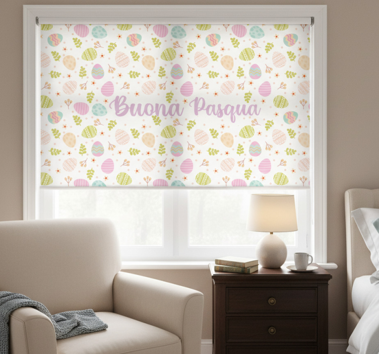 La Cortina roller amarilla buona pasqua es perfecta para quienes buscan transformar su espacio con un toque de color y estilo. Su diseño atractivo y contemporáneo no solo mejora la estética de la habitación, sino que también proporciona un ambiente alegre y acogedor. Además, al regular la luz solar directa y ofrecer privacidad, crea un entorno perfecto para disfrutar de momentos especiales en casa. ¡Haz de tu hogar un lugar lleno de vida y personalidad!