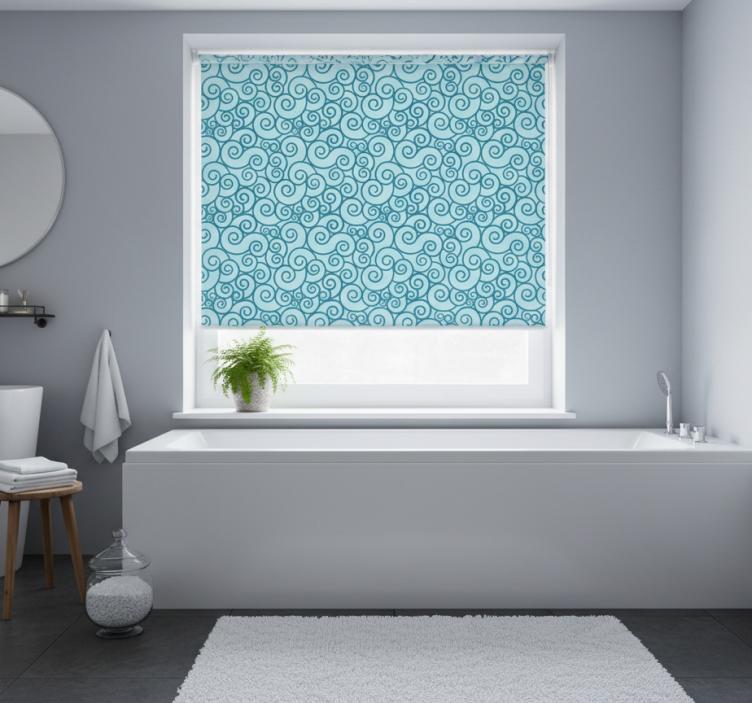 Cortina roller azul con diseño de espirales