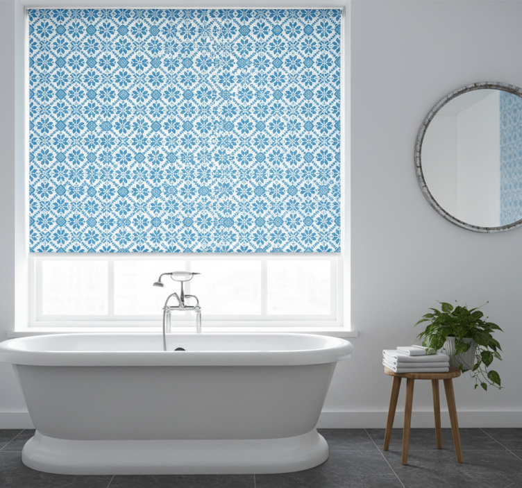 Cortina roller azul motivo de azulejos azules