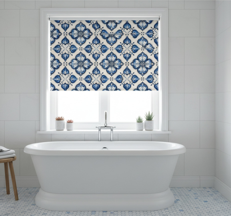 Cortina roller azul patrón floral azul