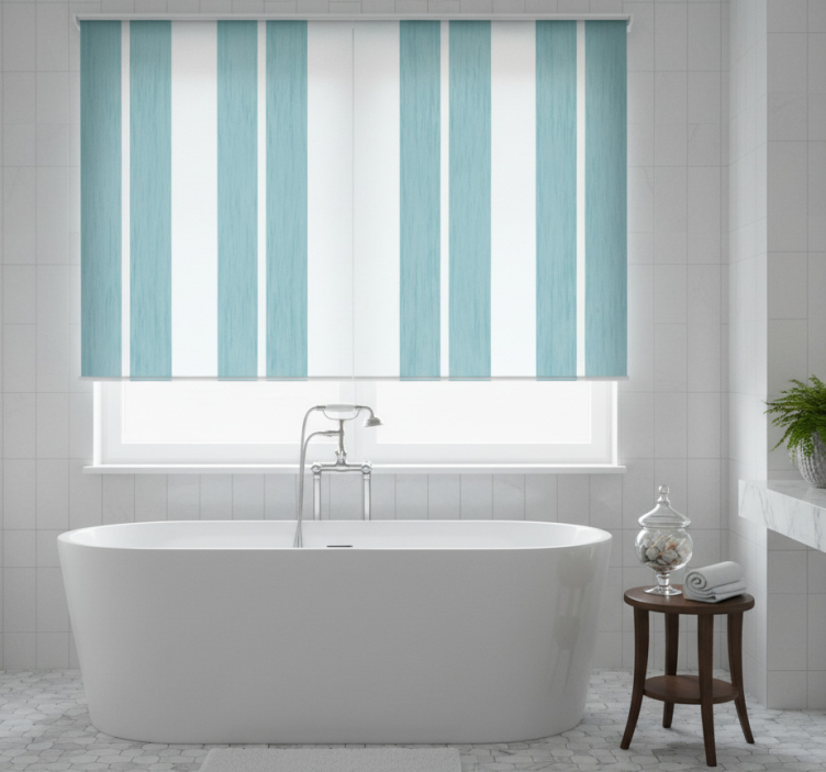 Cortina roller azul rayas en tonos turquesa