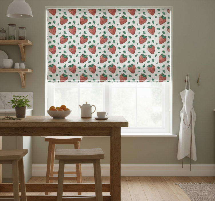 La Cortina roller cocina fresas jugosas y hojas verdes es la opción ideal para aquellos que buscan dar vida a su hogar. Su diseño alegre y colorido transforma cualquier cocina en un lugar donde la creatividad y el buen gusto se encuentran. Al elegir esta cortina, no solo embelleces tu espacio, sino que también creas un ambiente inspirador que invita a la alegría y la convivencia. ¡Deja que la frescura de las fresas y el verde de las hojas te envuelvan en cada comida y momento compartido!