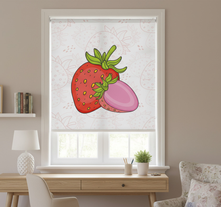 Cortina roller cocina fresas rojas y rosas sin fin