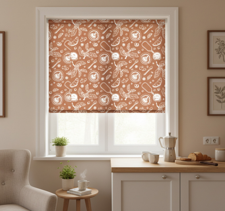 Cortina roller cocina patrón continuo de café
