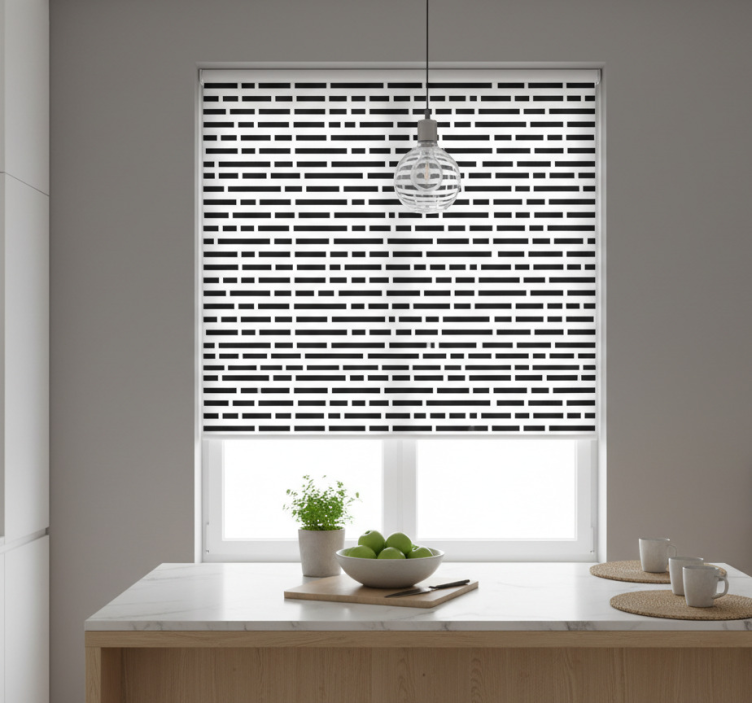 Cortina roller cocina rectángulos blanco y negro nórdicos