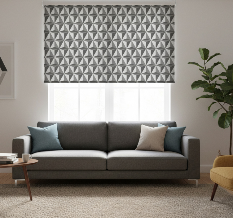 Referencia: E7688Descubre la elegancia y modernidad que aportan las Cortina roller moderno azulejos triangulares oscuros a tu hogar. Con un diseño que combina formas geométricas en tonos oscuros, estas cortinas no solo son una solución funcional, sino también un verdadero elemento decorativo que transforma cualquier espacio, ofreciendo un toque contemporáneo y sofisticado.