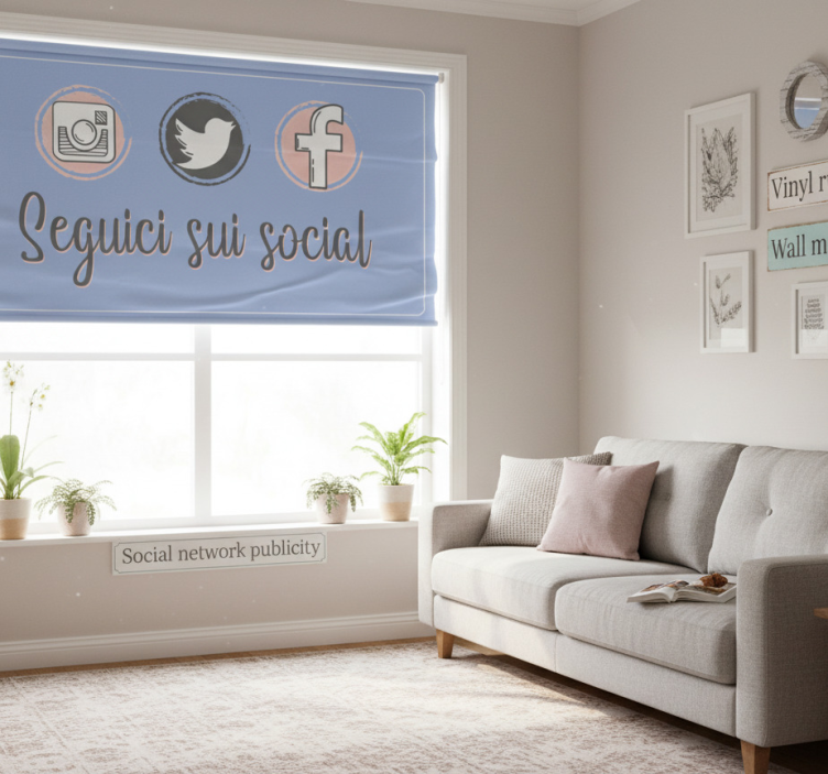 Cortina roller morada publicidad en redes sociales