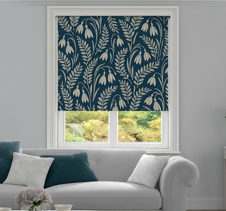 Cortina roller nórdico flores de campanilla beige navy