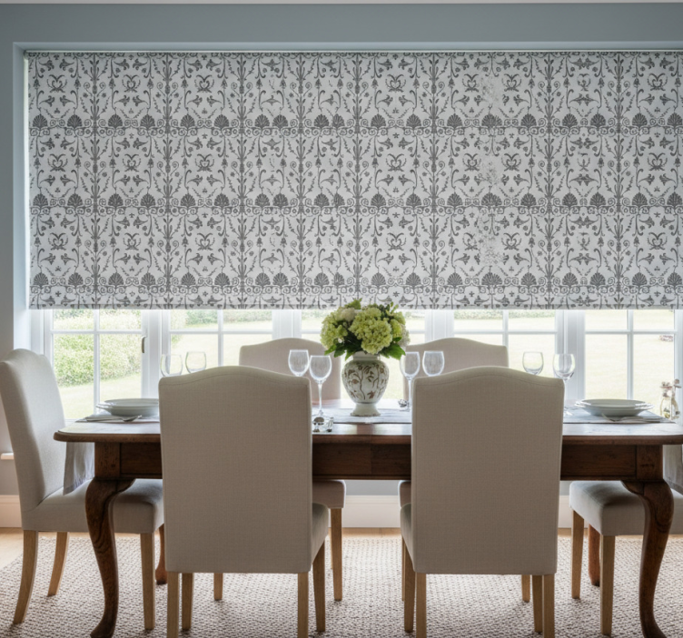 Estor enrollable comedor estilo provincial gris