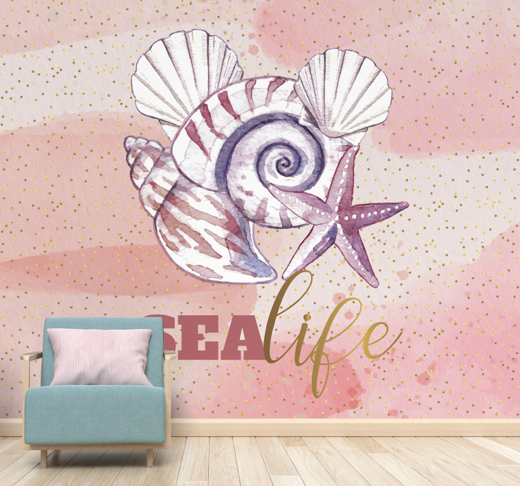 Papel mural mar con conchas y estrellas de mar