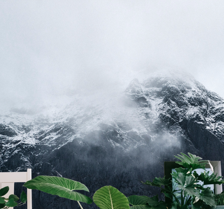 Sumérgete en la belleza natural con nuestro Papel mural montaña cumbre helada de la montaña. Este impresionante diseño captura la esencia de un paisaje montañoso cubierto de nieve, envuelto en una suave niebla y rodeado de nubes. La fotografía refleja la majestuosidad de la naturaleza, creando un ambiente sereno y acogedor en cualquier espacio.