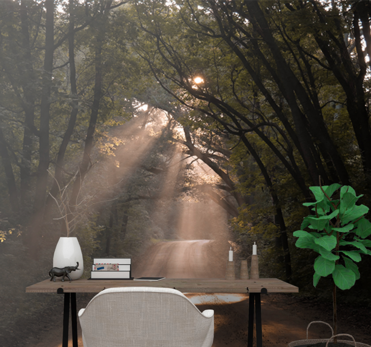 Transforma tu espacio con el Papel mural naturaleza sendero del bosque radiante, un diseño que evoca la serenidad de un bosque iluminado por la luz del sol. Este hermoso mural presenta un sendero rodeado de majestuosos árboles, creando una atmósfera cálida y acogedora. La fotografía que lo adorna te invita a explorar y disfrutar de la belleza natural que ofrece la vida al aire libre.