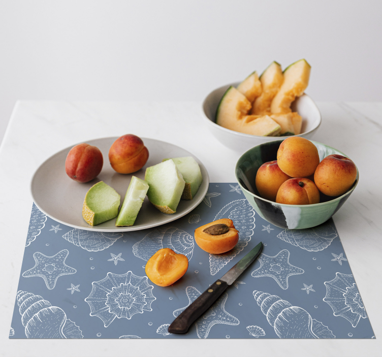 Personaliza la apariencia de tu mesa con estas superficies simples y duraderas que puedes poner debajo de tus patines. Diviértete y disfruta decorando. ¡Armoniza tus reuniones familiares en torno a la comida con este mantel de fondo azul con conchas y caballitos de mar!