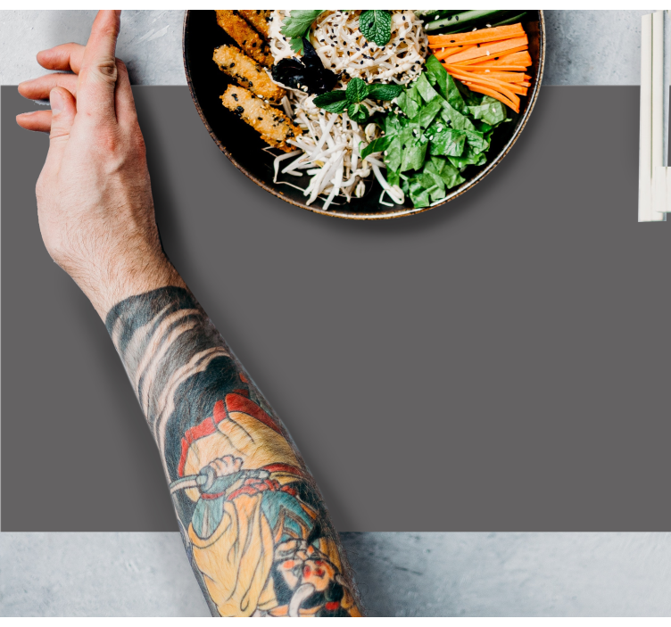 Imagina un mantel que no solo embellece tu mesa, sino que también despierta tus sentidos. Este mantel individual imitación diseño de platos de comida presenta un elegante diseño en tonos gris y monocolor, con una textura que recuerda a un cuenco repleto de vegetales frescos y apetitosos fideos. Con un toque artístico como un tatuaje en la mano, este producto no solo es visualmente atractivo, sino que también trae un aire de sofisticación a tu hogar.