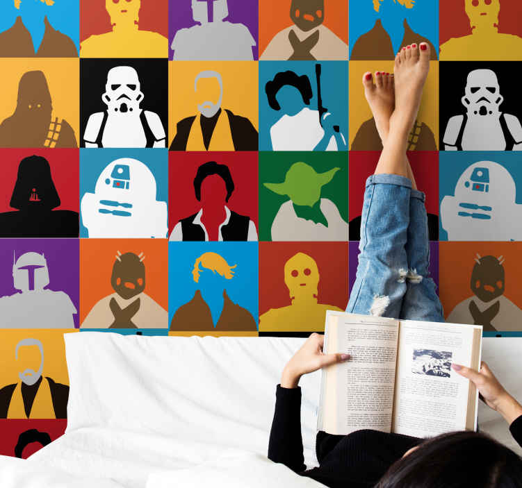 Descubre el papel mural arte siluetas icónicas, una obra maestra gráfica que fusiona una cuadrícula exquisita con un patrón vibrante. Este estampado vistoso te transporta a la cultura pop, donde los iconos y siluetas se entrelazan en un collage dinámico. ¡Es el toque perfecto para cualquier espacio que busque personalidad!