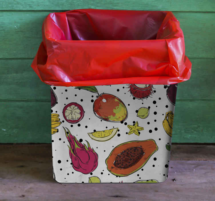 Boceto de vinilos de contenedores de coloridas frutas exóticas