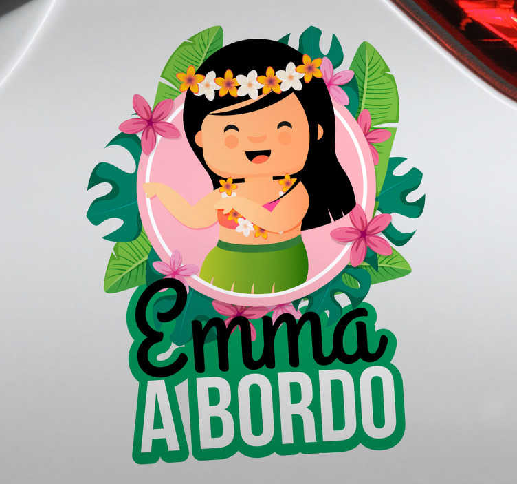 Referencia: D191Diseño con un estampado jungla tropical y una pequeña bailarina hawaiana en la parte central. Puedes escoger el tamaño que desees, incluso si deses aplicar o no el sticker por la cara interior de un cristal. Adhesivos fáciles de aplicar tanto sobre vidrio como en superficie metálica, muy resistentes a las inclemencias del tiempo.