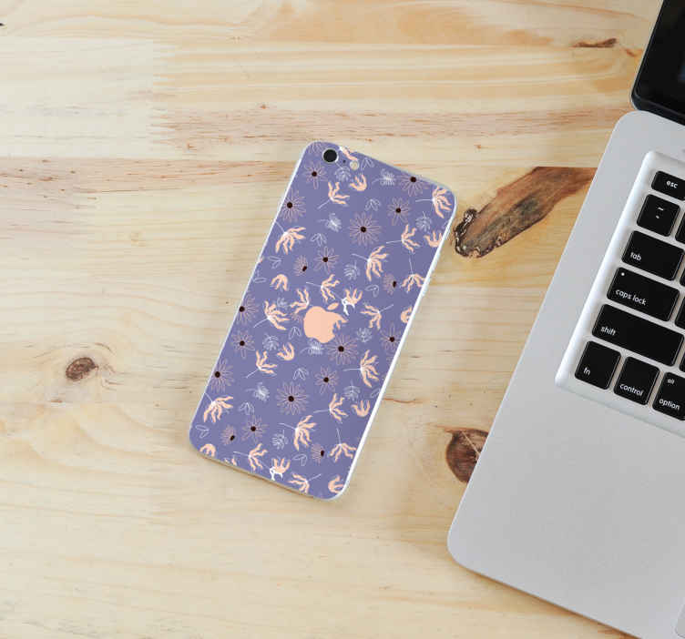 Pegatina iPhone Diseño floral abstracto naranja y morado