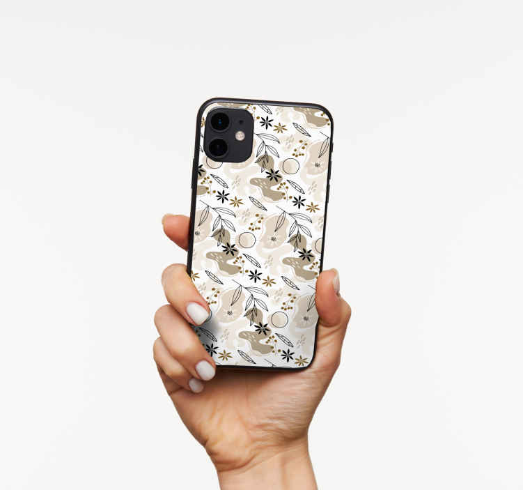 Pegatina iPhone Elegante patrón de hojas de color rosa y beige